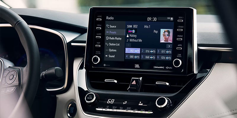 Enjoy a 3-month SiriusXM® All Access trial subscription that comes standard on Corolla. Easily play your favorite stations on the available 8-in. touchscreen display.