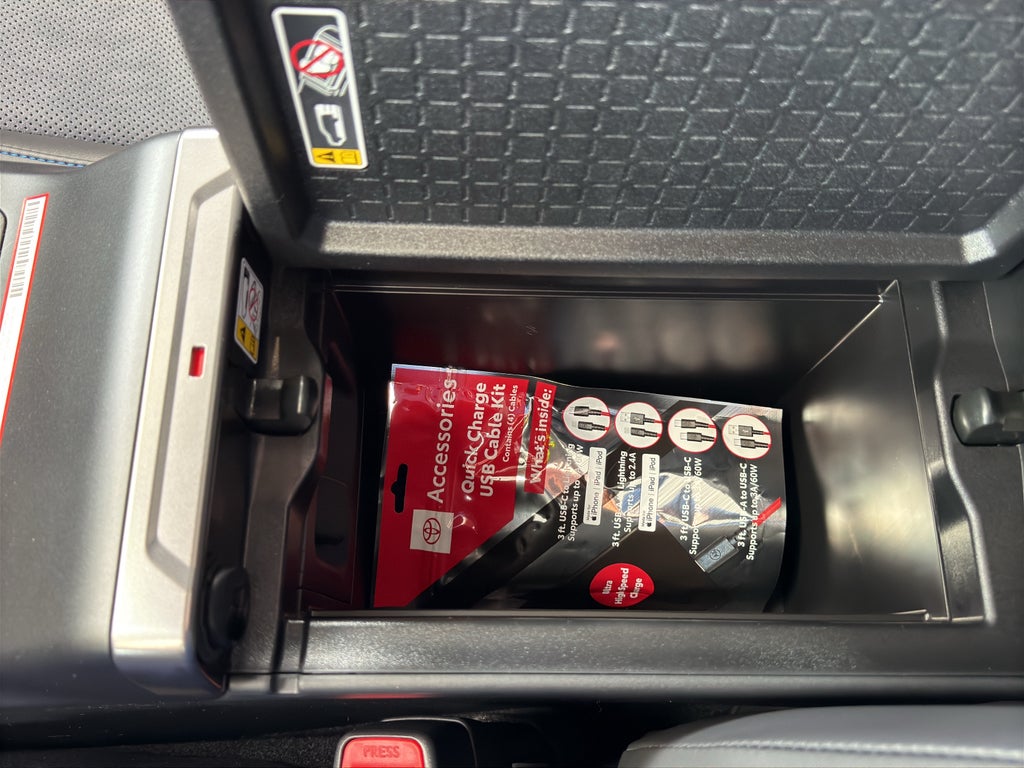 - Center console with covered storage compartment, reversible armrest/console tray, two cup holders, drive mode (trail, snow, normal and EV mode), auto LSD/VSC, Electric Parking Brake (EPB) 7 and automatic Brake Hold 10 controls, and front storage tray