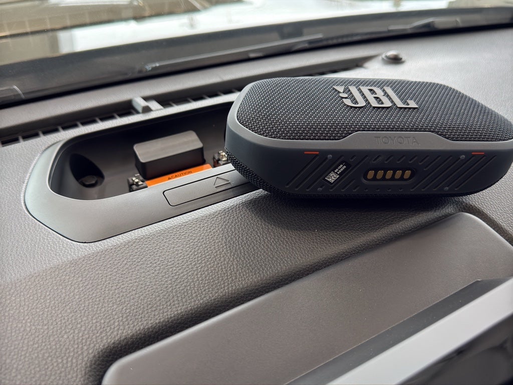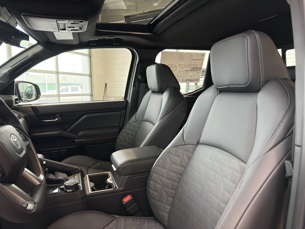 TRD Sport Premium Package (i-FORCE MAX) — includes SofTex®-trimmed seats with heated and ventilated 8-way power-adjustable front seats, leather-trimmed heated steering wheel, 14-in. Toyota Audio Multimedia display, Panoramic View Monitor (PVM), 37 JBL® 28 Premium Audio with JBL® FLEX 29 portable speaker, moonroof, Qi-compatible wireless charging, 44 dual zone automatic climate control, Front and Rear Parking Assist with Automatic Braking (PA w/AB) 36 and Pedestrian Detection, 42 prewired auxiliary switches, digital rearview mirror, Integrated Trailer Brake Controller (ITBC), 27 power open/close tailgate, 43 58 Digital Key 14 capability, and power horizontal rear window